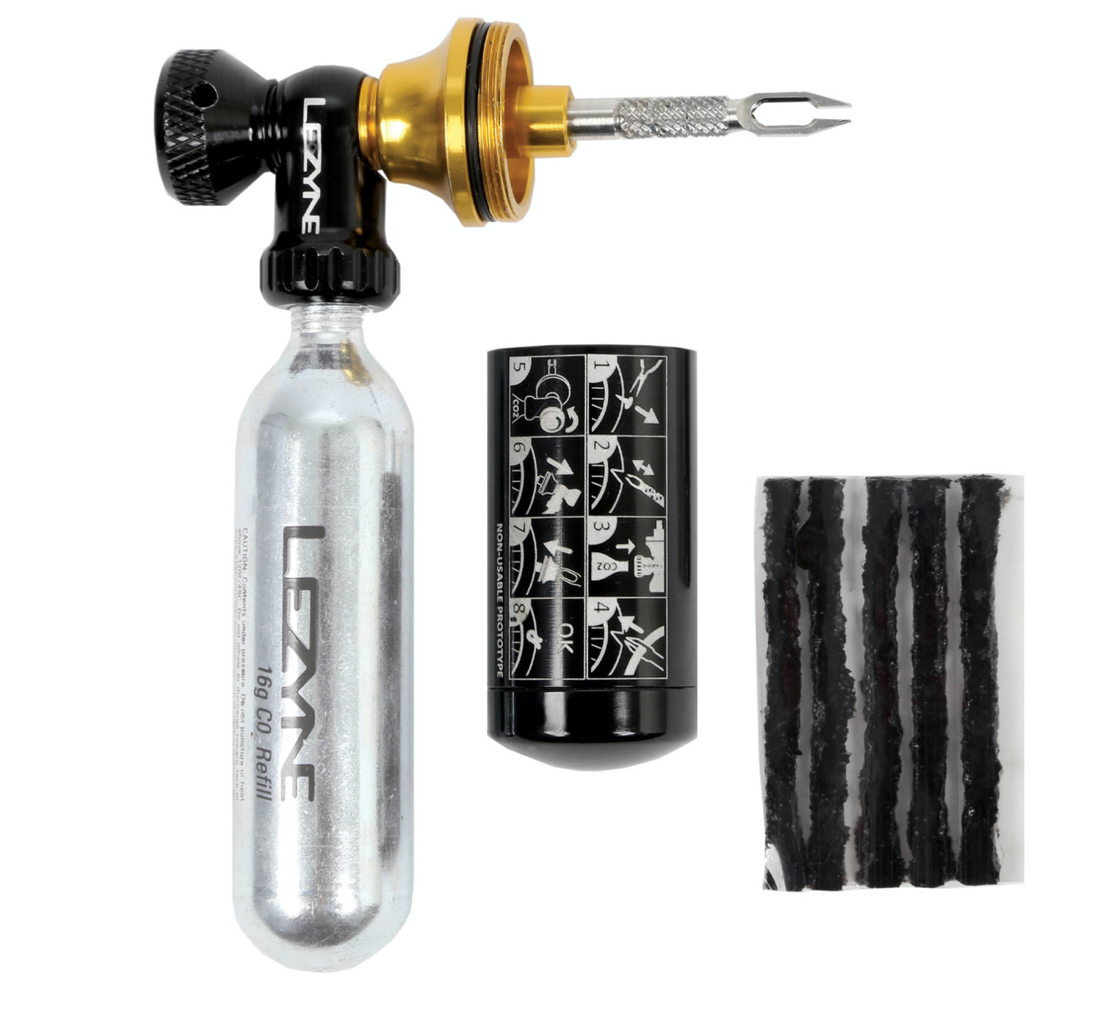 Der innovative 2-in-1-CO2-Spender für Fahrräder und das Reparaturset für schlauchlose Reifen füllen und versiegeln gleichzeitig schlauchlose Reifen. Die maschinell bearbeitete Aluminiumkonstruktion ist leicht und äußerst langlebig. Die Reibahle aus gehärtetem Stahl scheuert das Loch, fügt den Stopfen ein und pumpt den Reifen für eine effiziente und schnelle Reparatur auf. CNC-gefräster Drehknopf steuert manuell die Freisetzung von CO2-Gas. Der Aluminiumbehälter fasst die fünf mitgelieferten Reifenstopfen und bewahrt die Reibahle bei Nichtgebrauch sicher auf. Hochwertige Reifenstopfen verschließen aggressiv Löcher, die zu groß sind, um nur mit Dichtmittel verschlossen zu werden (die Lochgröße variiert von Reifen zu Reifen). Schlankes, kompaktes Design passt in eine Tasche oder Riemen an Ihrem Fahrrad. Inkl. 2 Patronen und Reifenstopfen.