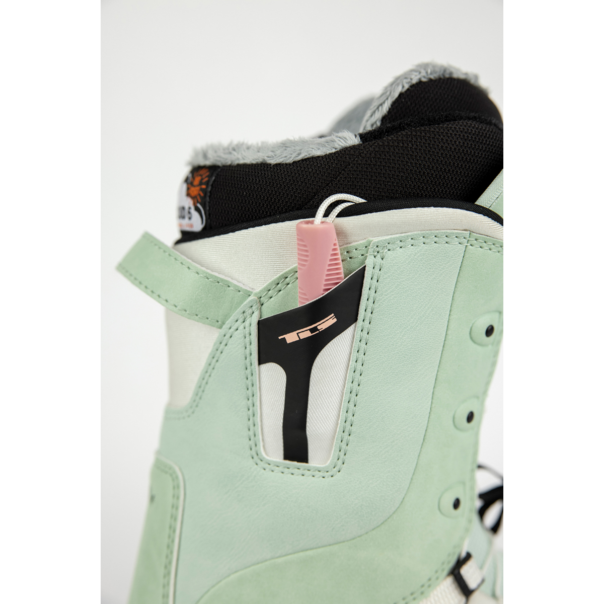 Dieser präzisionsgeformte, reibungsarme Kunststoffeinsatz wird an der entscheidenden 45°-Schnürposition im Knöchelbereich positioniert. Er reduziert die Reibung der Schnürsenkel drastisch und macht das Binden des TLS-Systems noch einfacher.