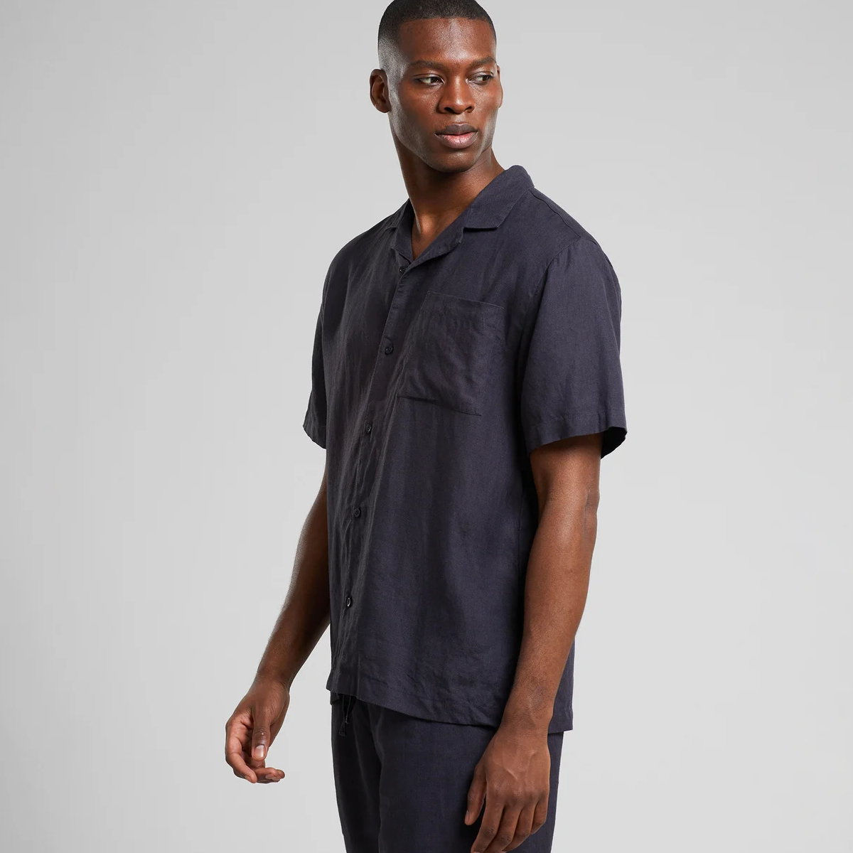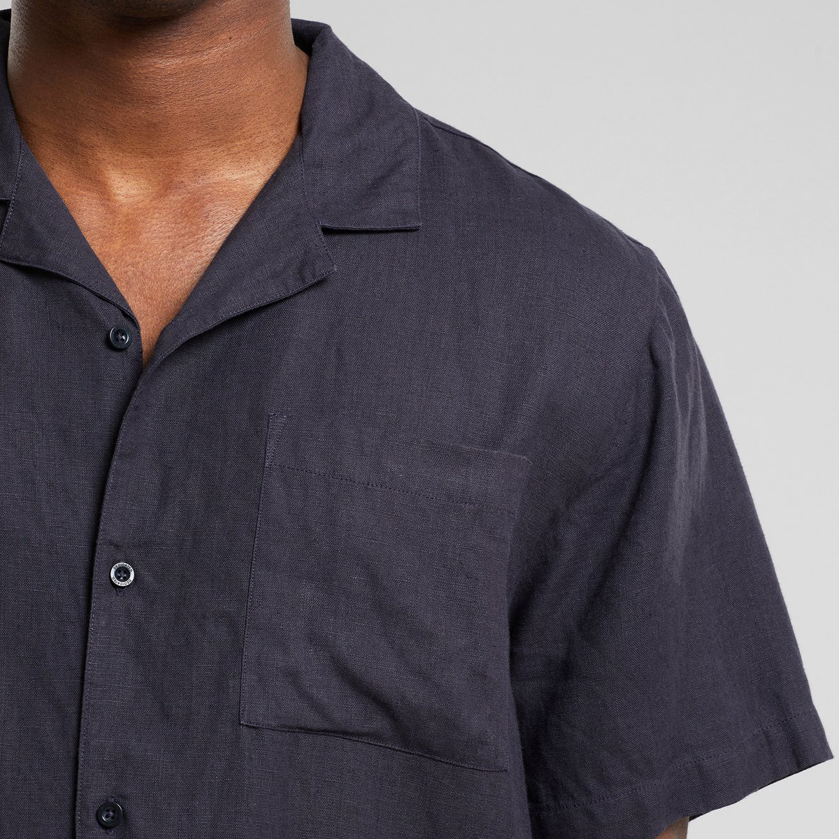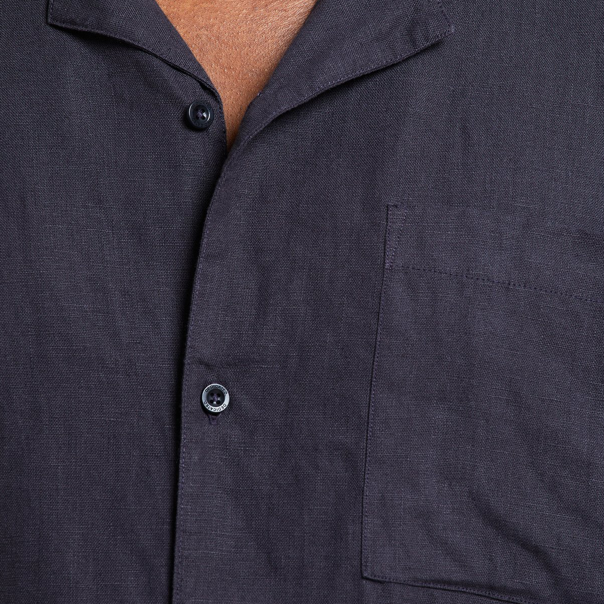 Entspanntes Resort-Hemd aus 100% Leinen. Mit Resort-Kragen, Brusttasche und Corozo-Knöpfen auf der Vorderseite.