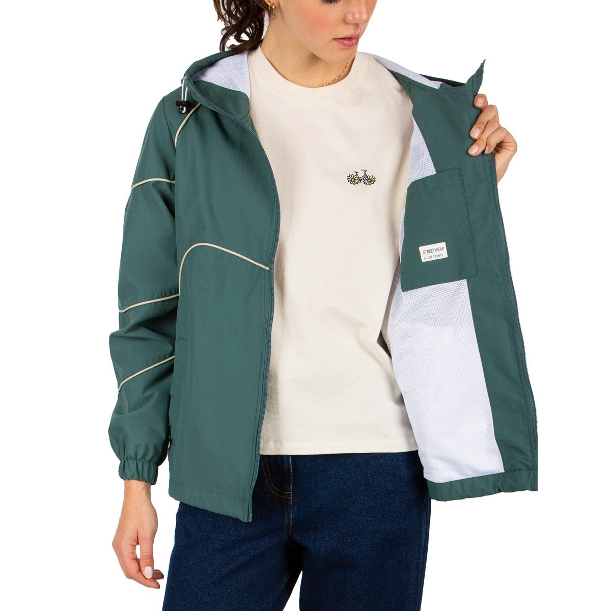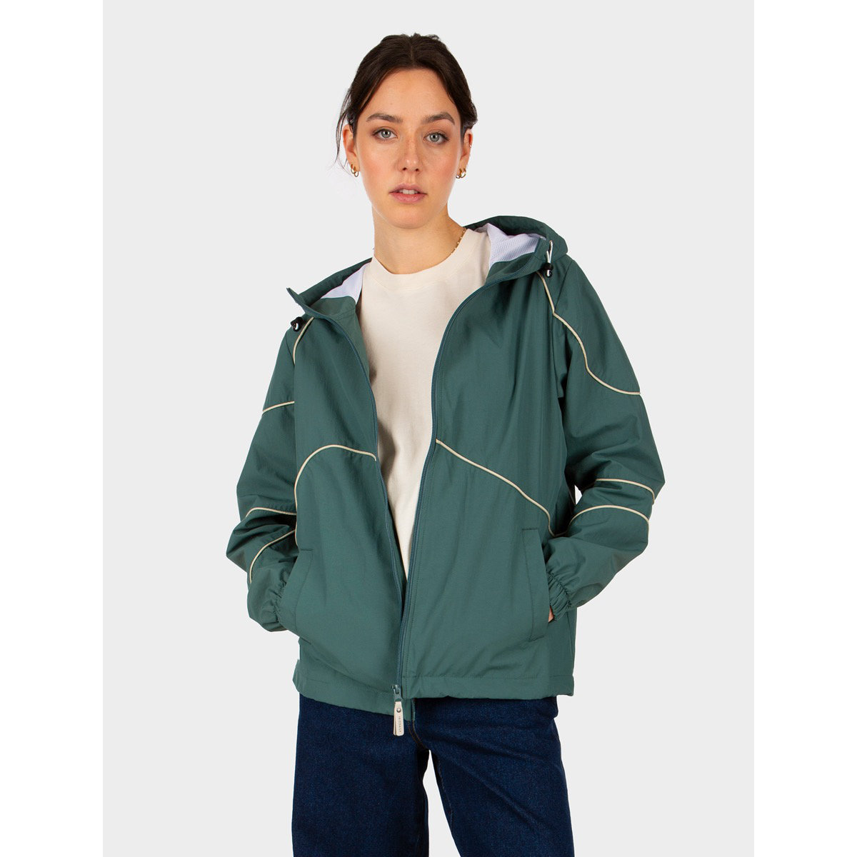Die IRIEDAILY Jessie Jacket ist der perfekte Allrounder für Frühling und Sommer. Diese leichte Sommerjacke aus recyceltem Nylon eignet sich ideal für den Alltag, das nächste Festival, Fahrradtouren oder entspannte Abende im Park. Die asymmetrischen Schnittlinien verleihen der Kapuzensweatjacke einen modernen, individuellen Look. Dank der verstellbaren, elastischen Kordel im Saum und der schmalen Bündchen an den Ärmeln sitzt die Jacke perfekt. Sie ist wind- und wasserabweisend, vegan und unter fairen Bedingungen produziert!