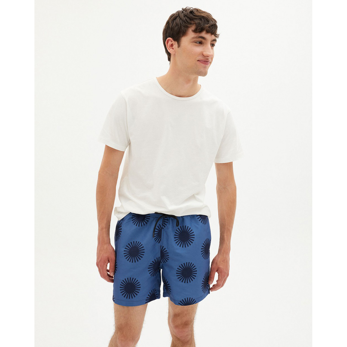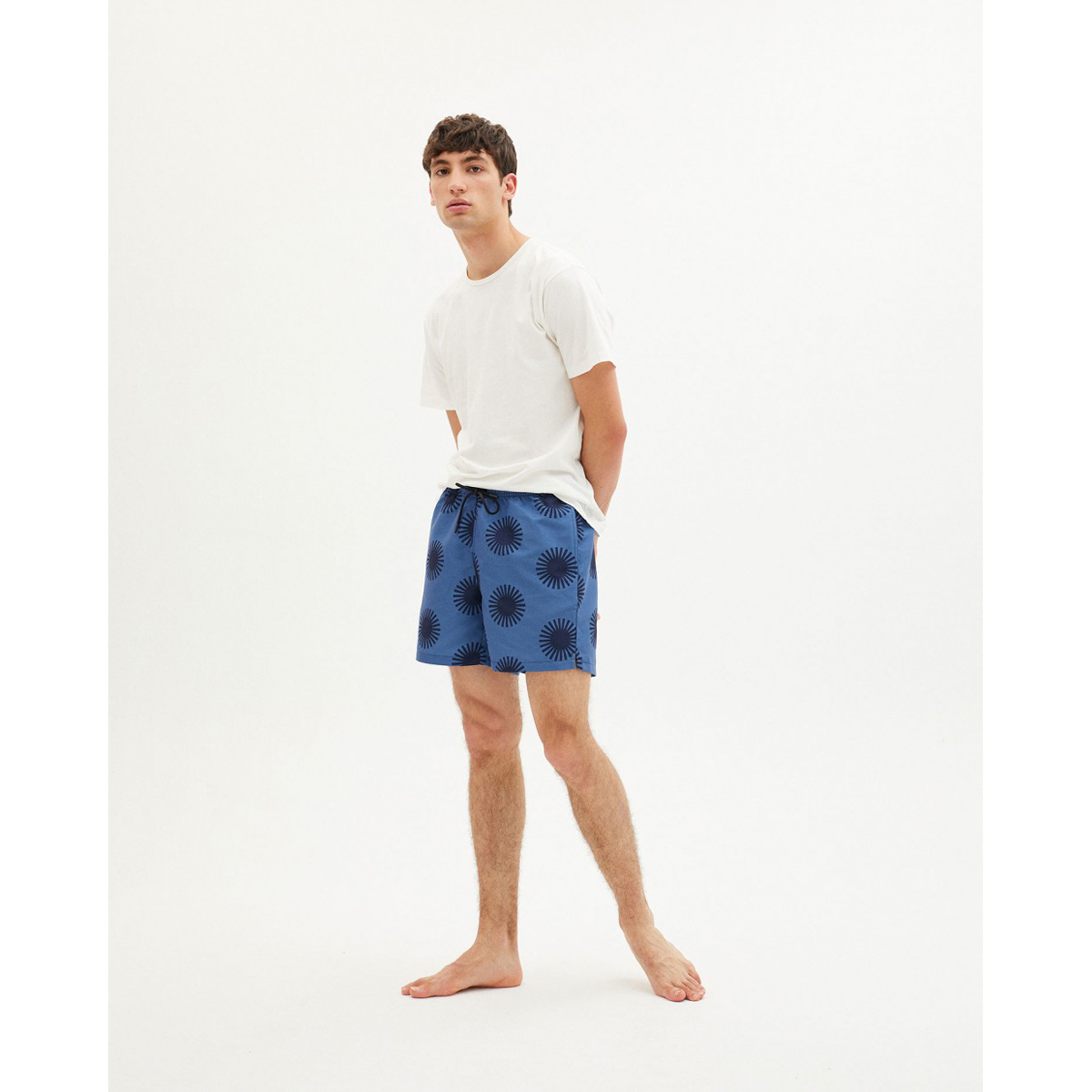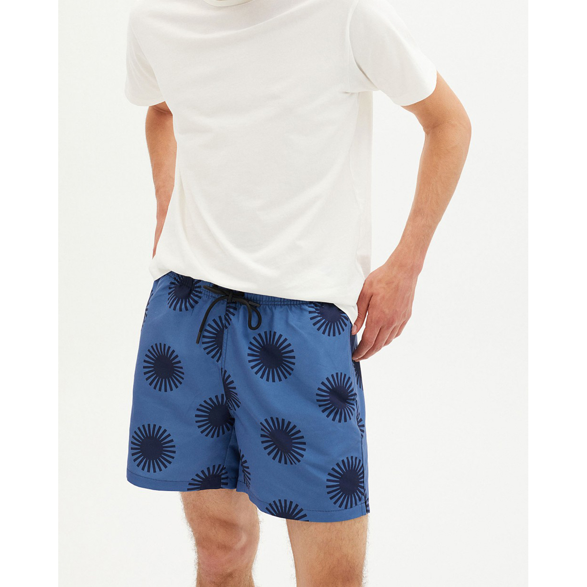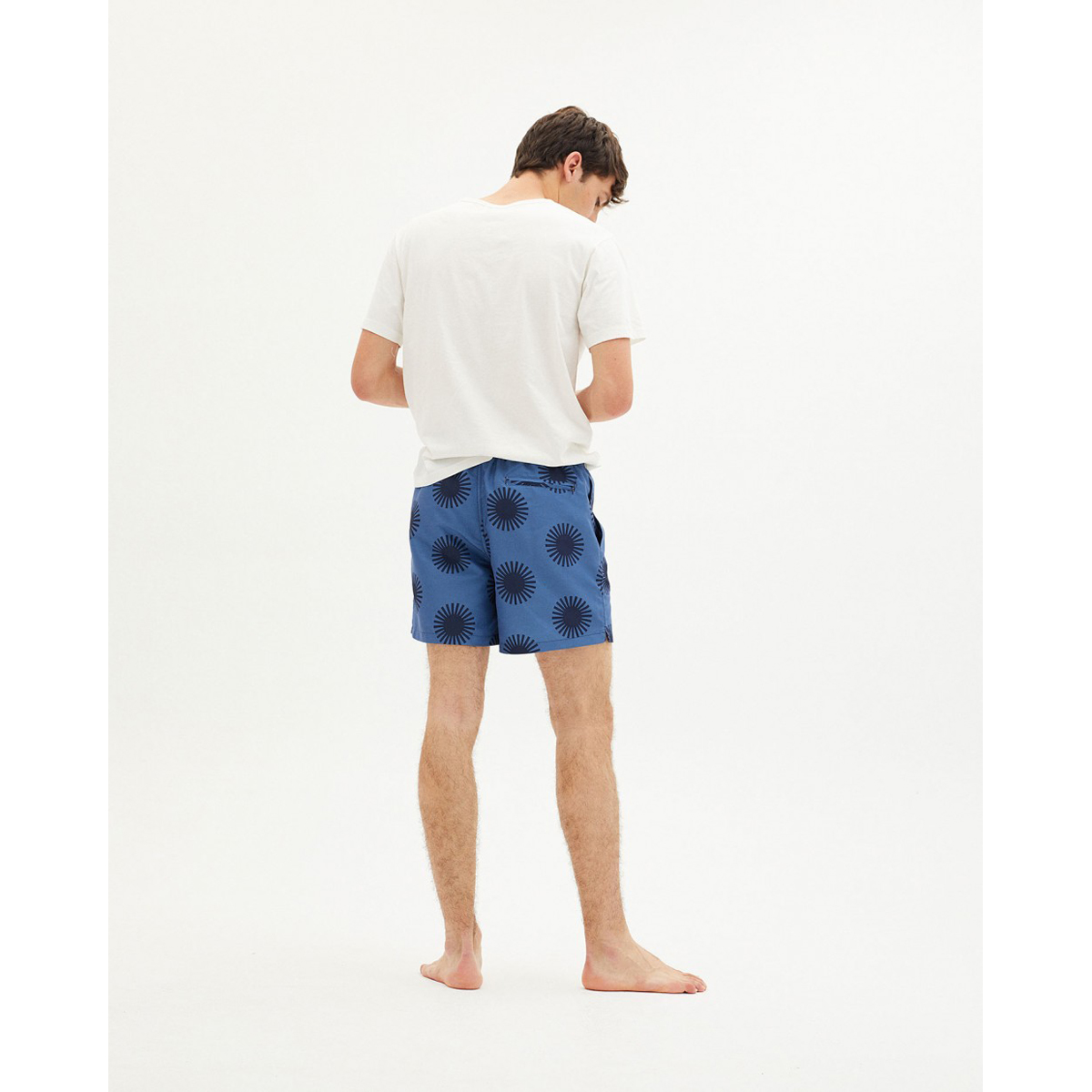 Diese Badeshort ist aus Altpolyester hergestellt und gehört deshalb zu der Trash-Kollektion von Thinking Mu. Trash ist die zero-waste Initiative, bei der Kleidung aus wiedergewonnenen Fasern von Altkleidern und anderen recycelten Materialien zusammen mit neuen organischen oder nachhalrigen Fasern hergestellt wird. Trash Collection wird vor Ort in Barcelona hergestellt.