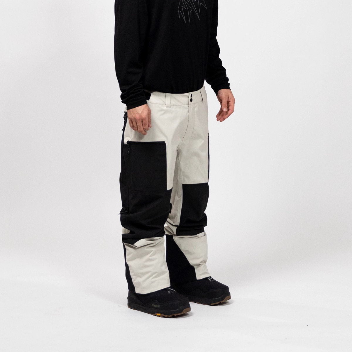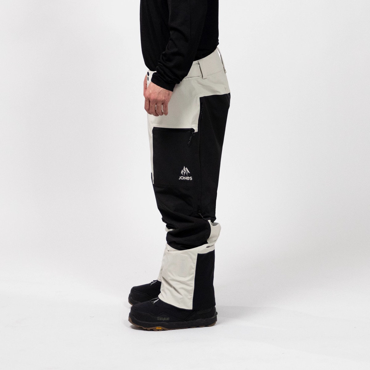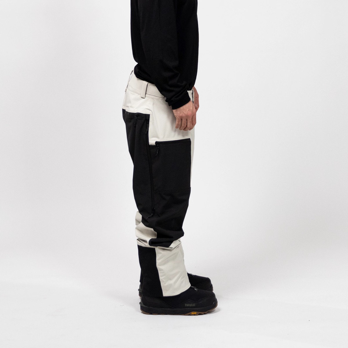 Sie zeichnet sich durch eine entspannte Passform und ein hochleistungsfähiges, körpergerechtes Materiallayout aus, bei dem zwei einzigartige, zu 100 % recycelte Polyesterstoffe verwendet werden. Gesäß und Knie, wo die Hose am meisten mit dem Schnee in Berührung kommt, sind aus robustem, abriebfestem Ripstop-Gewebe gefertigt, während der Rumpf und die Oberschenkel, wo bei Bewegung Wärme entsteht, aus Vier-Wege-Stretch-Gewebe bestehen.