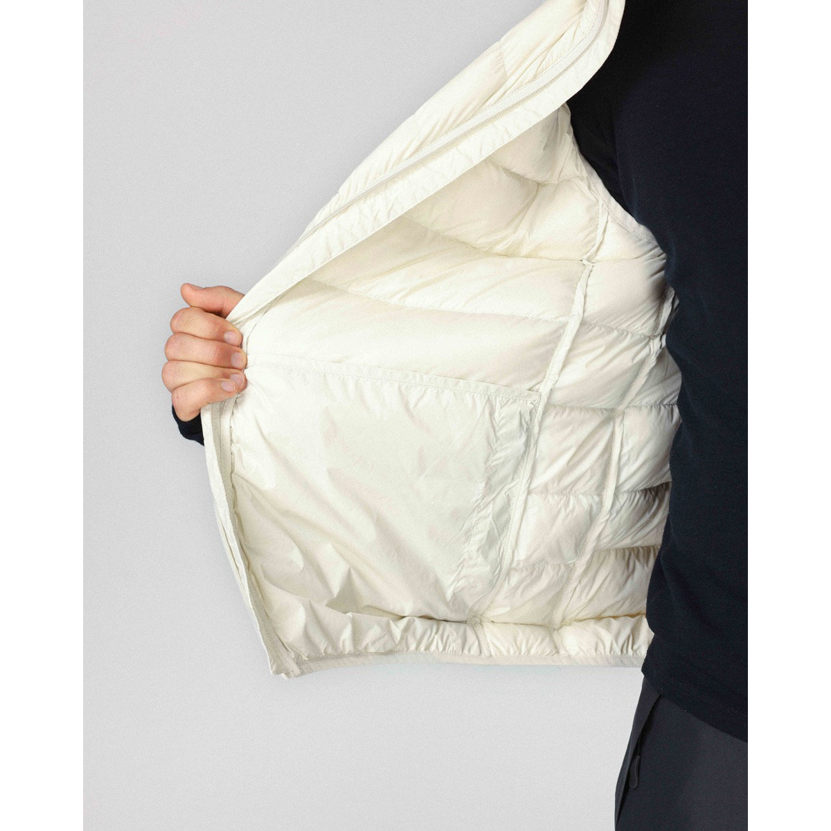 Die dünne und leichte Veste ist so konzipiert, dass sie allein oder als Zwischenschicht getragen werden kann. Ziehen Sie sie an, wenn Sie zusätzliche Wärme benötigen, und packen Sie sie in die Tasche, wenn Sie sie nicht brauchen.