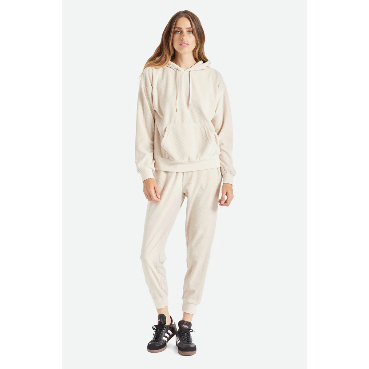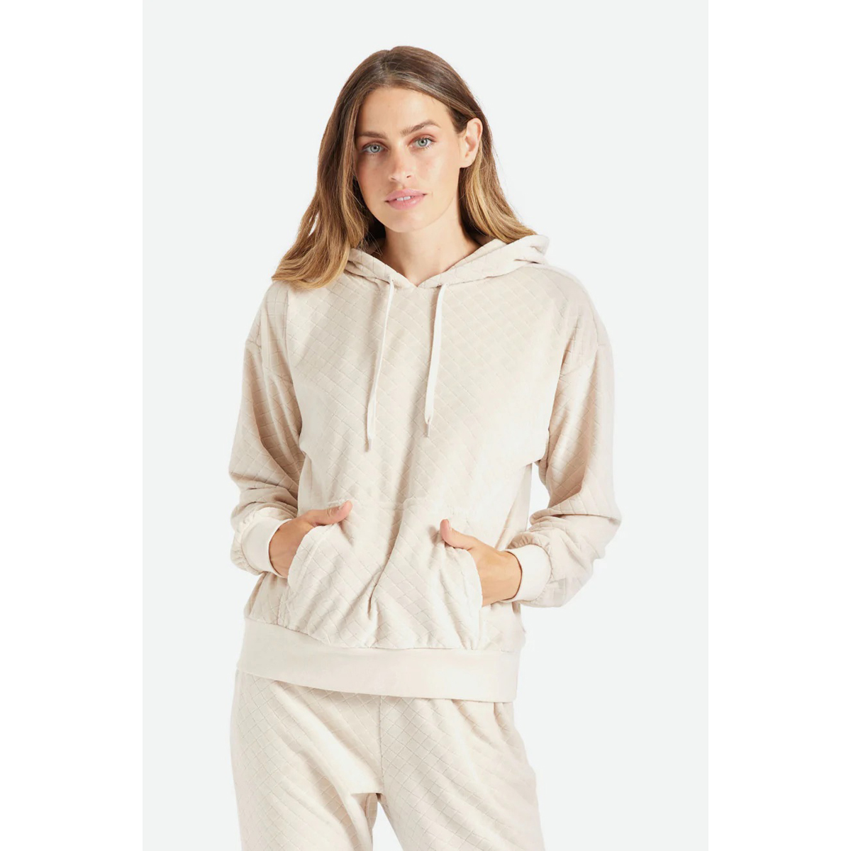 Der Rocky Hoodie von BRIXTON ist ein äußerst weicher Kapuzenpullover aus einer plüschigen Baumwollmischung. Die einzigartige Rautensteppung sorgt für Struktur und Wärme und macht ihn zu einem kuscheligen Begleiter für Tage der Selbstpflege. Er hat eine lockere Passform mit überschnittenen Schultern und dezenten Ballonärmeln.