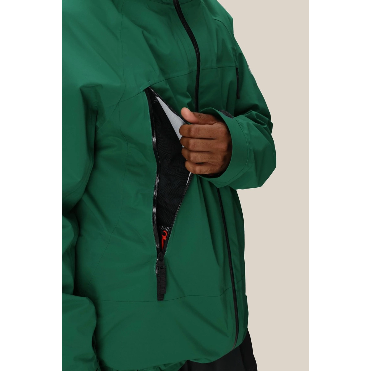 An Front und Brusttaschen – garantieren zusätzlichen Schutz vor Feuchtigkeit. - Abnehmbarer, verstellbarer Powder-Skirt