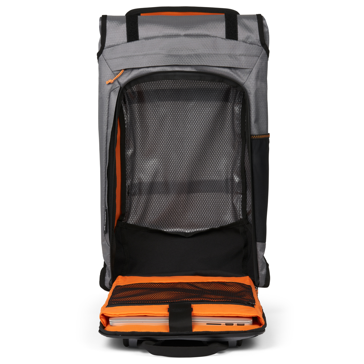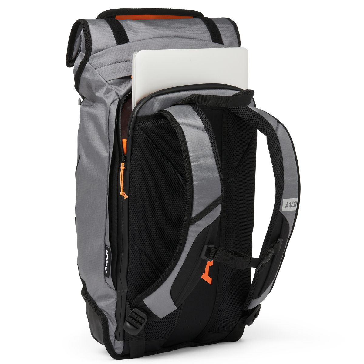 - 2 Zugänge zum Hauptfach: Rolltop System mit Klettverschluss und umlaufender Zipper am Rücken
