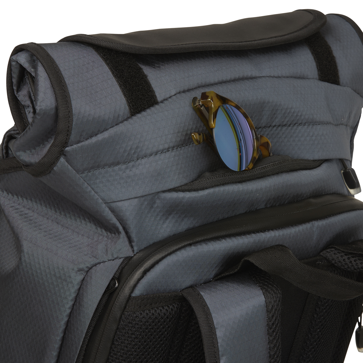 - 2 Zugänge zum Hauptfach: Rolltop System mit Klettverschluss und umlaufender Zipper am Rücken