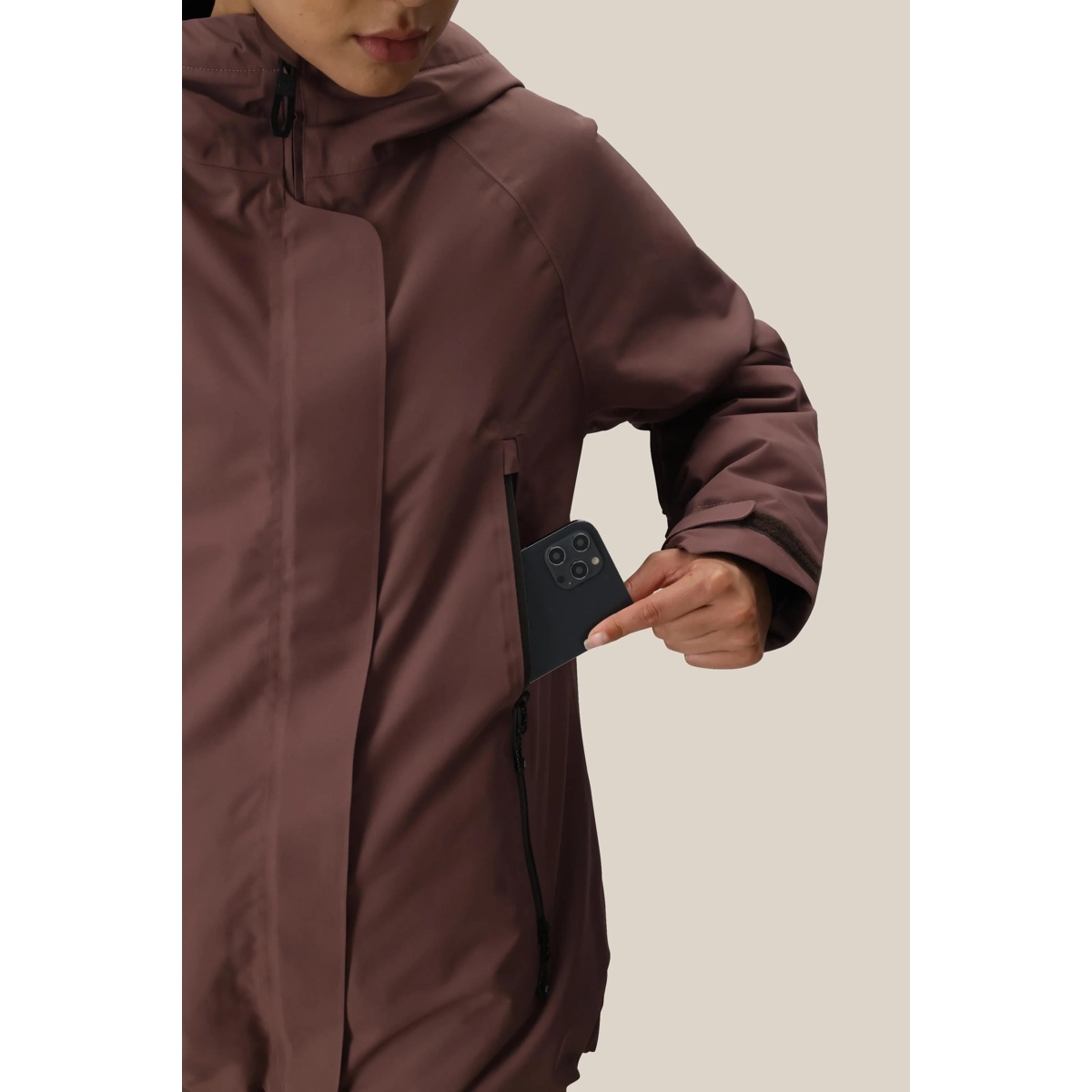 - Verstellbare, helmkompatible Kapuze